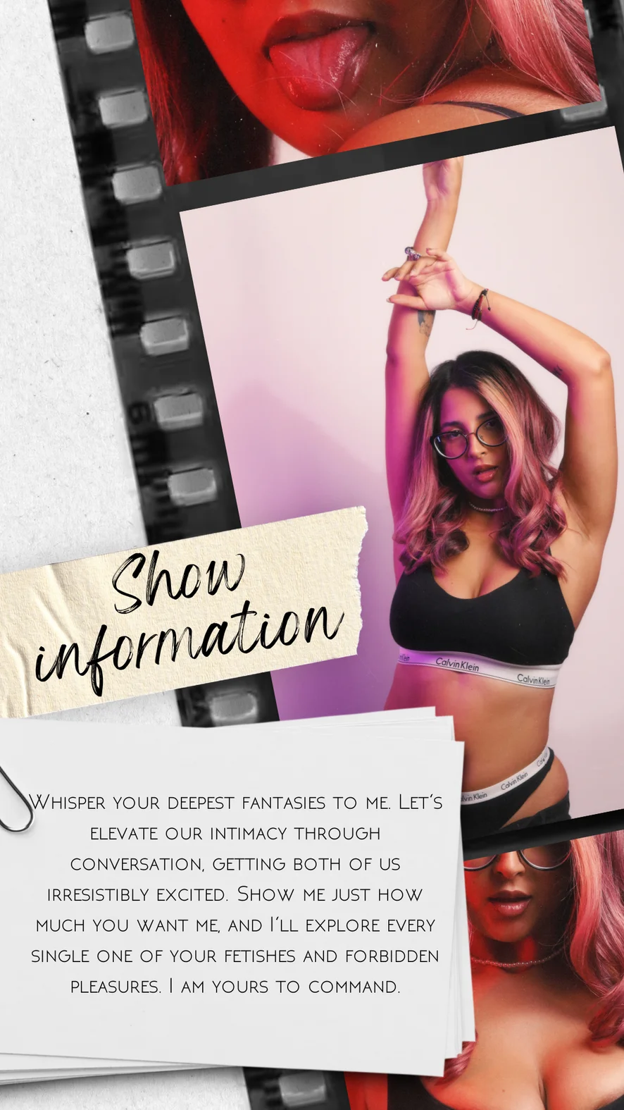 Doggy Style, Mistress, Spanking, Erotic Dance, Cock Rating, Leather, Fingering, Striptease, Foot Fetish, Tittyfuck, Office, Ahegao, Camel Toe, Strapon, Creampie, Cuckold, Dirty Talk, Facial, Masturbation, Nylon, Orgasm, Handjob, Footjob, Heels, Anal, Corset, Dildo or Vibrator, Double Penetration, Shower, Smoking, Jerk-off Instruction, Role Play, Anal Toys, Massage, Oil Show, Topless, Cowgirl